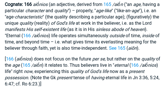 First thing we have to define from Scripture is the word Eternal. Here's what Strong's Concordance from BibleHub has to share: