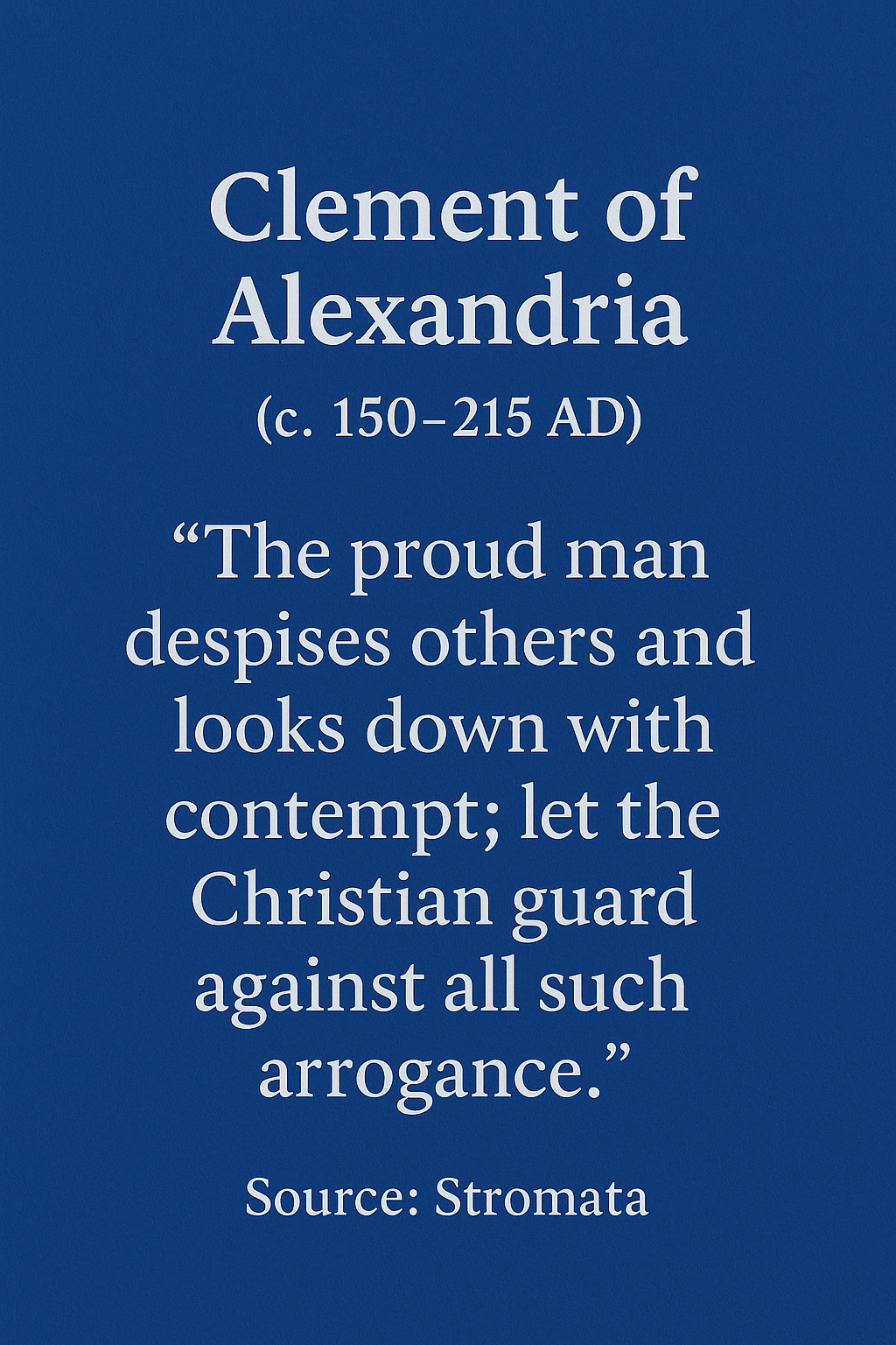 Source: Stromata “The proud man despises others and looks down with contempt; let the Christian guard against all such arrogance.” Scorn arises from pride; humility is the antidote. Basil the Great