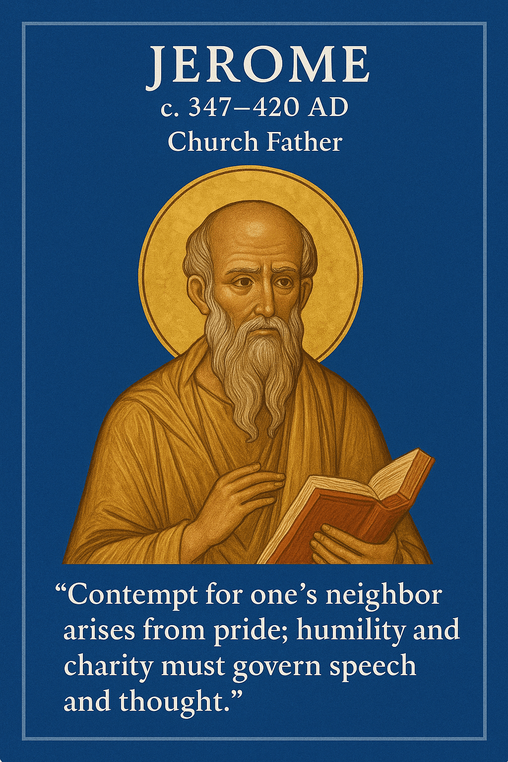 Source: Letters “Contempt for one’s neighbor arises from pride; humility and charity must govern speech and thought.” Focuses on moderation and guarding the heart against arrogance. Ephrem the Syrian