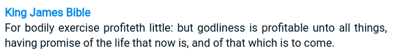 However, of greater weight than those things is what the Bible calls godliness. Godliness has value for now and for the time to come. So what we have to realize as men is that the physical nature is good and it has value, but it must be brought under the authority of the Spirit of God, for godliness has benefit for now and for that which is to come.